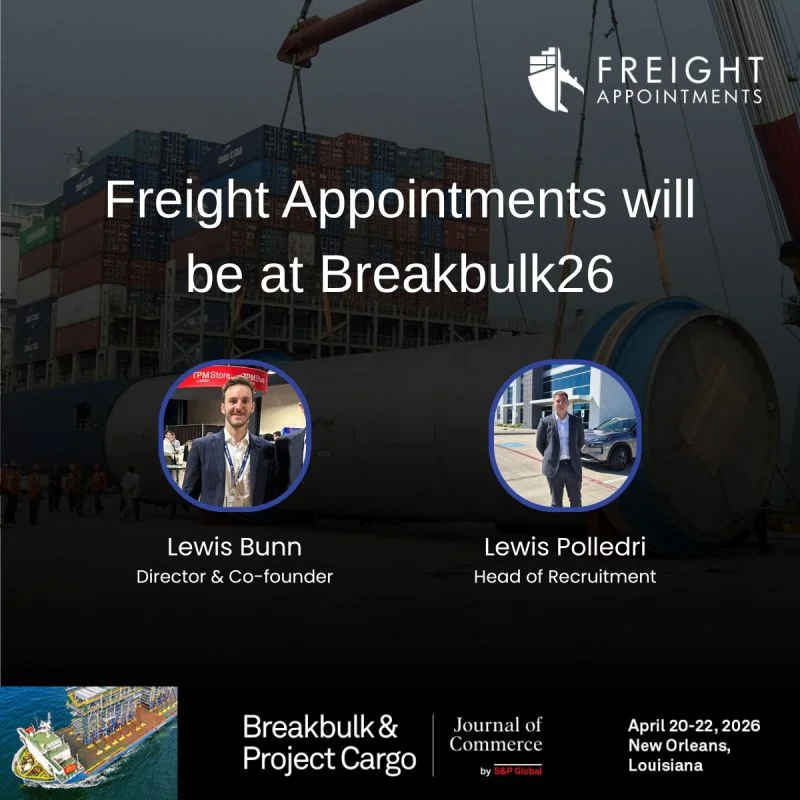 For Freight Appointments, Breakbulk & Project Cargo 2026 presents an opportunity to engage with both clients and candidates within the project logistics space, strengthen existing relationships, and build new connections across the global freight community.